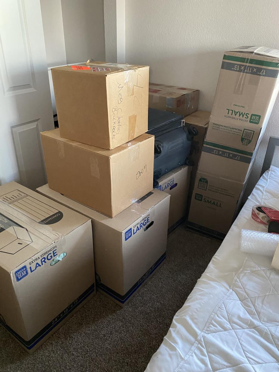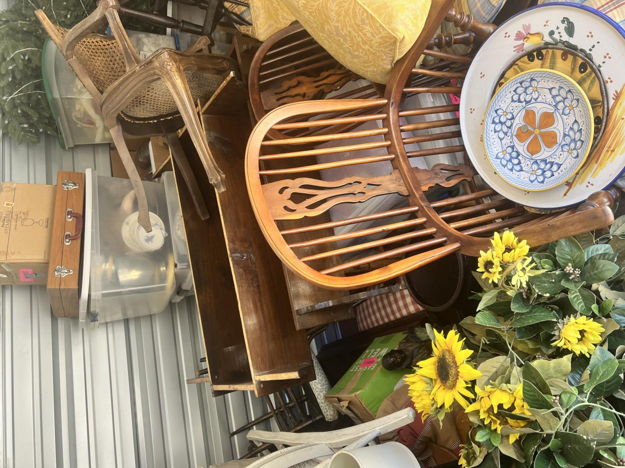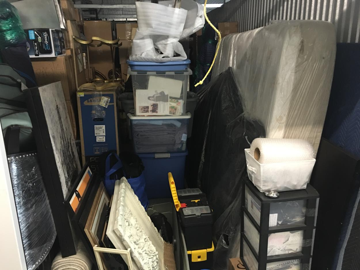 Inventory includes: large low Dresser, armoire, nightstand, queen bed, king bed, queen washer & dryer, large sofa, end tables, writing desk, Bombay chest, chairs, kitchen stools, large dining table, bar cart. 40-/+ boxes of various sizes, 3 wardrobe boxes, 4 large storage boxes/bins, personal items, etc. (photo attached is of actual unit/contents).