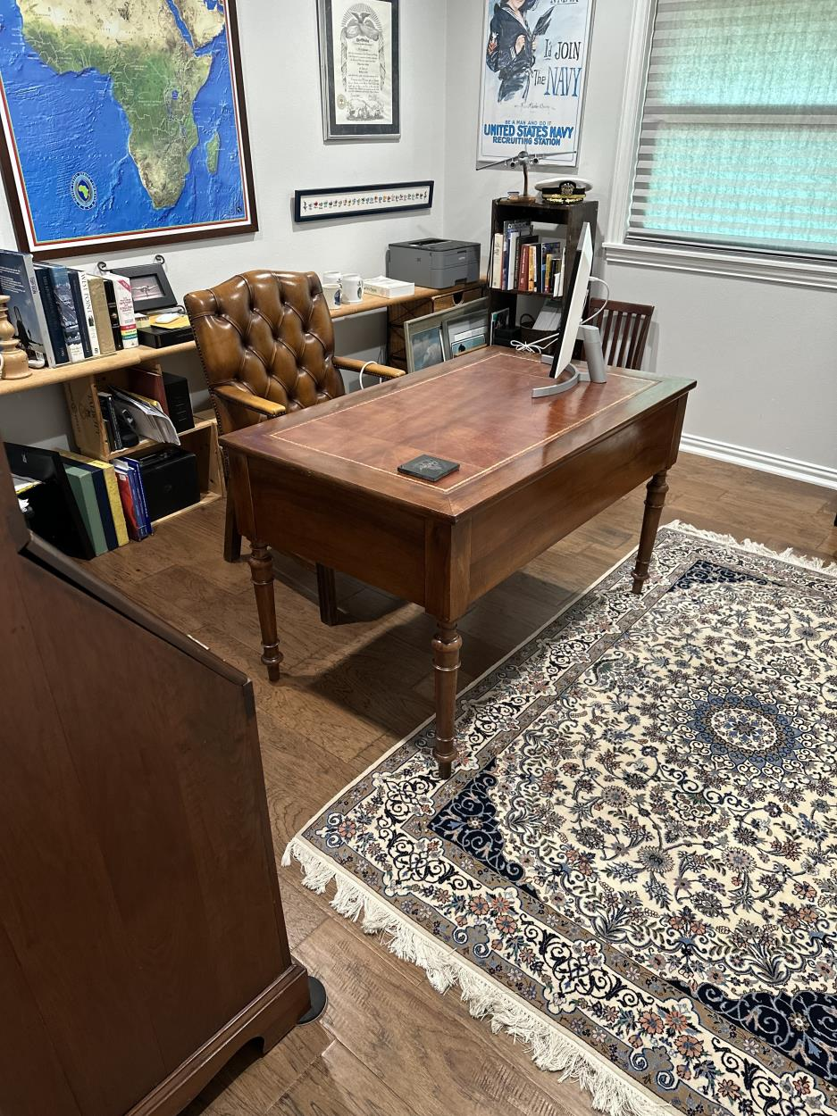 Downsizing, very little furniture. She shed-2 craft drawers, hope chest, maybe massage chair. Idea shelved cabinet w/ doors, mostly kitchen food & cooking utensil boxes.