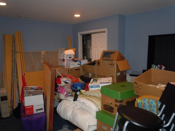 Moving from basement of single family home to apartment. 1 bed and mattress, 1 dresser, 1 futon, 2 tvs, 1 coffee table, 1 recliner, 1 small tv stand, approx 15 boxes.