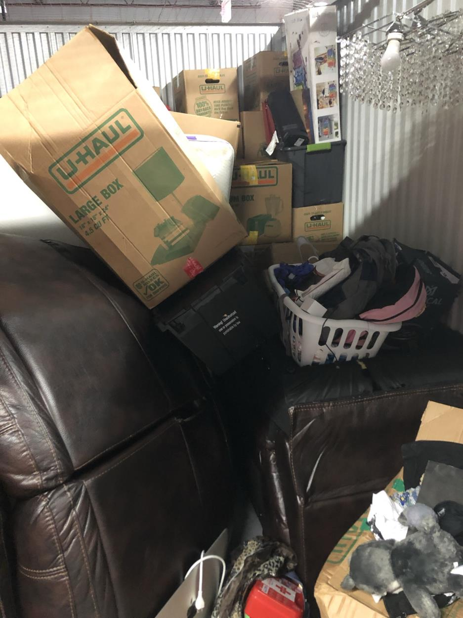 Picking up fro storage unit with elevator 30 larger boxes and crates 4-65’ tv larger fragile China closet super large sectional sofa misc boxes and tattoo equipment
