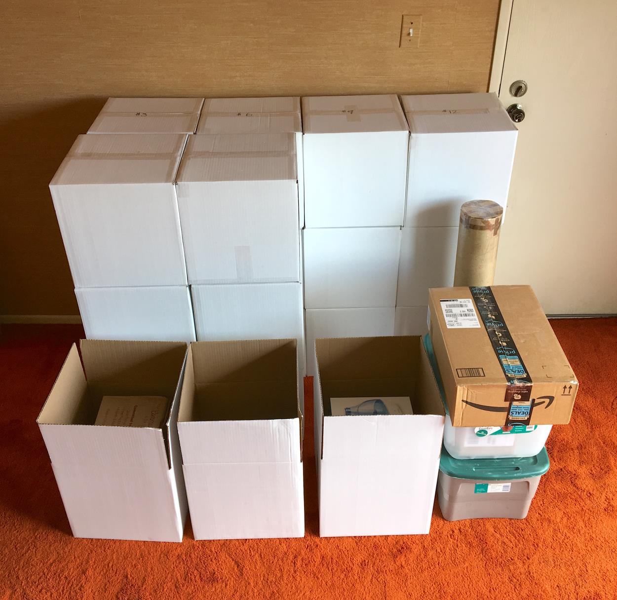 The shipment consists of 25 boxes (around 50 lbs. each, 14x14x14) and 1 poster tube.