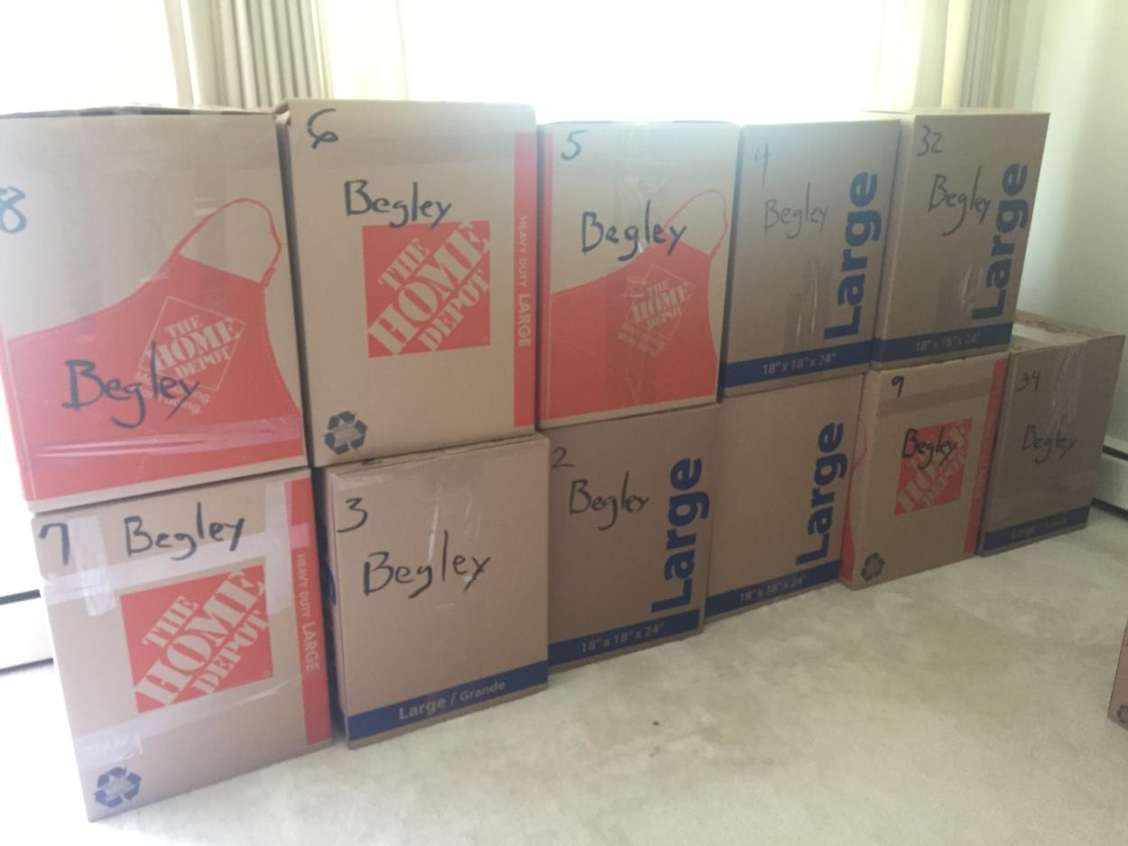 Everything fits into two 4'×10'×8' U-haul storage units filled to approximately 6' height with items. Will be moved from a U-Haul storage facility to another storage facility. Everything is in boxes or plastic totes, with exception of the below items.