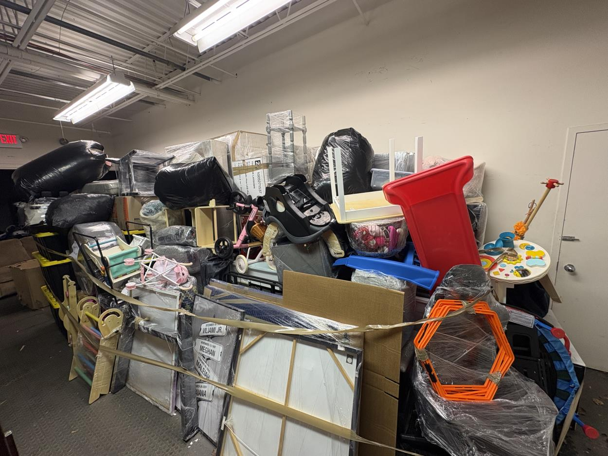 assorted baby stuff (1 stroller, 1 collapsible changing table, maybe 5 boxes of toys + clothes, bouncer)