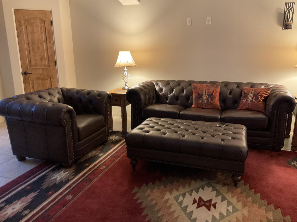 All items in storage 10x30x8 unit. 1 sectional couch, entertainment center and tv, 1 dining table 6 chairs, 6 barstools, coffee and side tables, 1 king 4 queen beds, rugs, pictures, approx 16 boxes and bags, planter pots, ice chests, fishing poles, sleeping bags, misc small household items