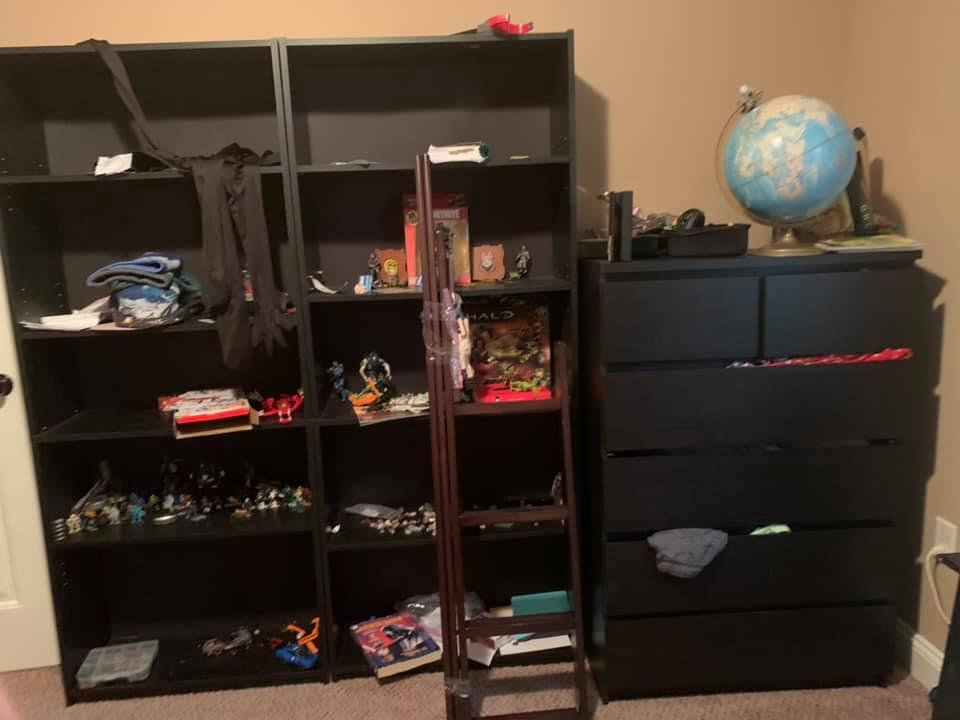 - Queen bed & mattress/box, 2 night stand, 1 tall dresser, 1 double dresser with mirror, 1 tall triple dresser