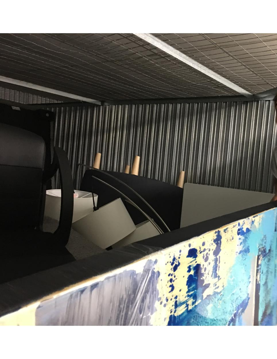 10x10 storage unit. Only 1 master bedroom set with queen bed and 3 dressers. Entertainment center. Dining table. And washing machine. Not much big furniture. Mainly boxes, clothes and toys.