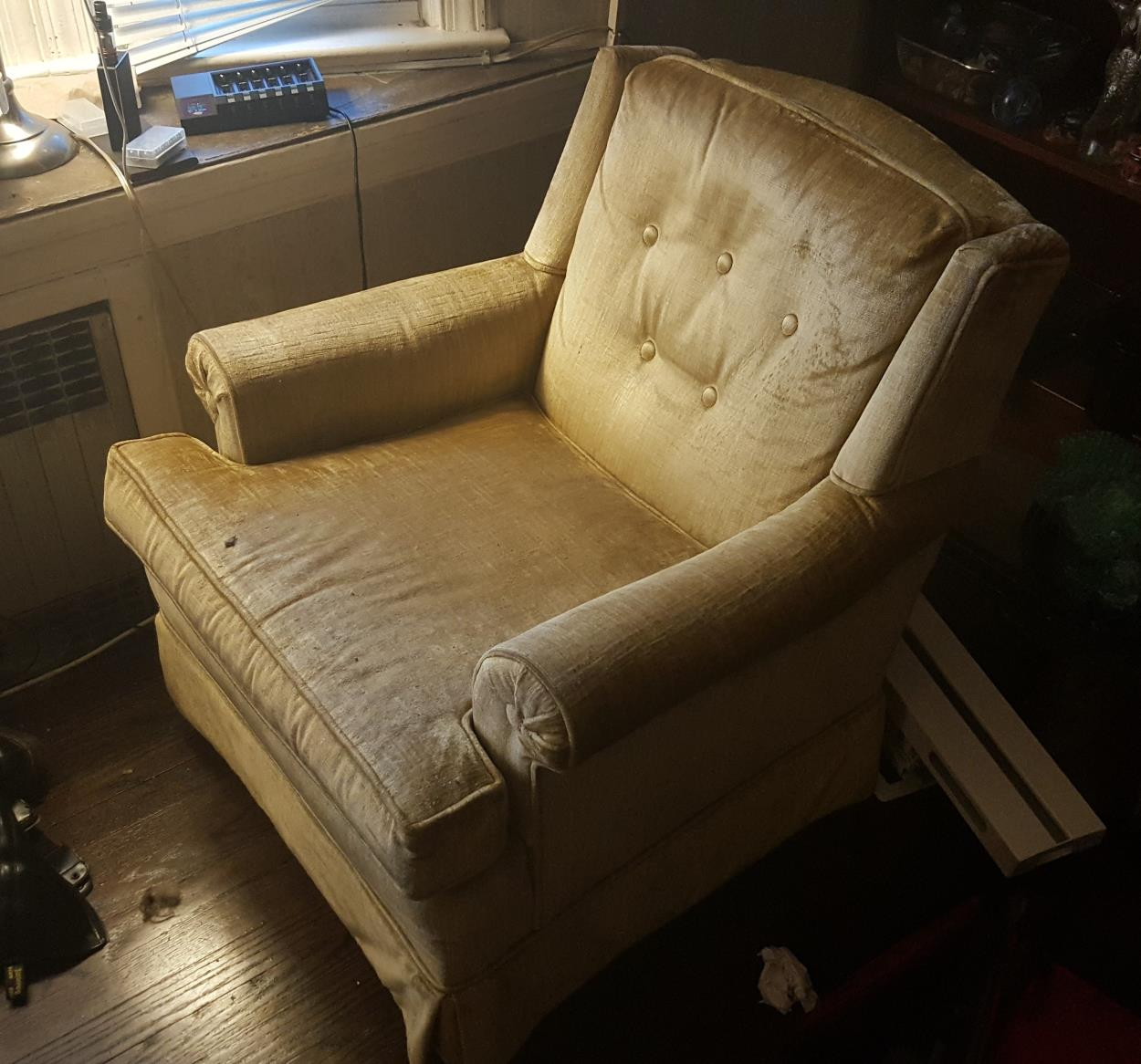 Pickup involves 1 small heavy wood dining table approx 100lbs and 5 long x 3' wide and 3' tall and 6 dining chairs with high backs. In addition 1 leather chair approx 40" tall x 36" deep, with high back, 1 small leather footstool approx 2' x 18" x 18" , 1 plastic folding table approx 6' long and 1 folding tripod floor lamp.