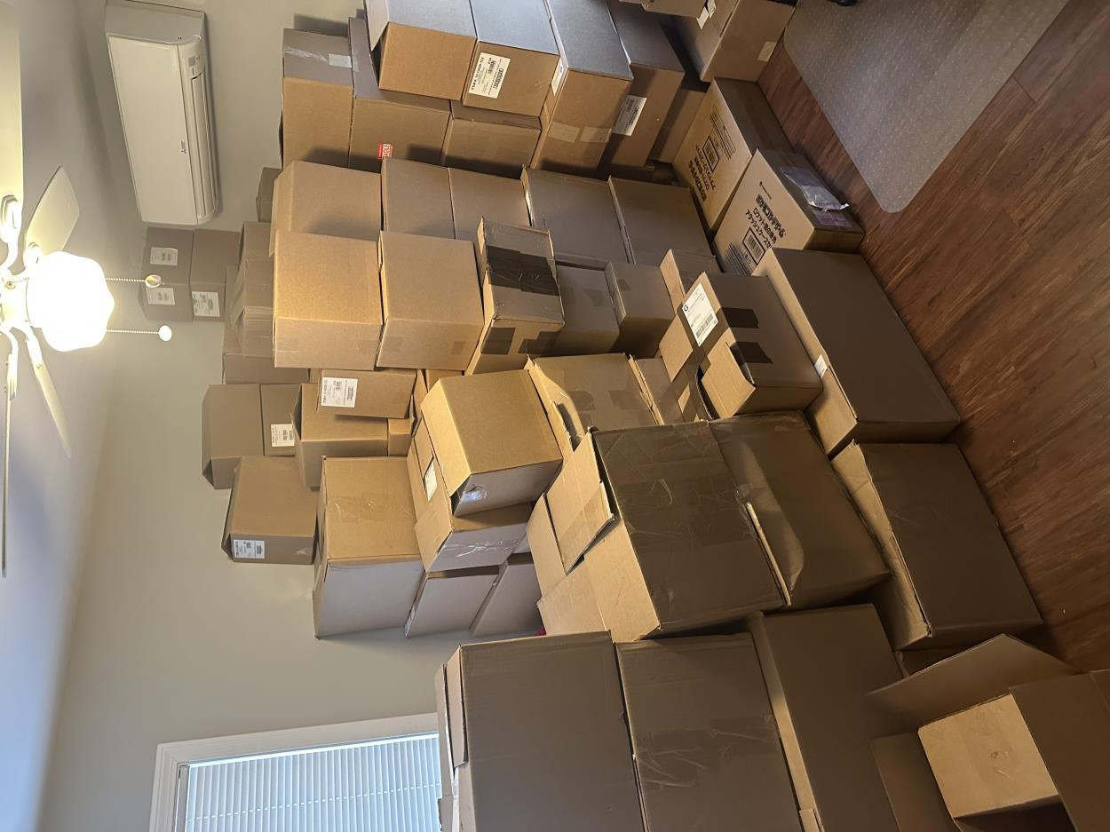Roughly 40 boxes of home-goods and clothing.