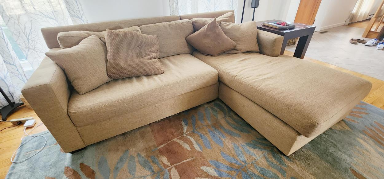 1200 to 1600 cubic feet of beds, dressers, bookshelves, table & chairs, couches, lawn mower, gas grill, televisions, power washer, tools, and boxes of personal effects. Moving date depends on home sale closing date, but probably in early to mid June.