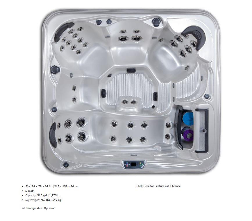 An 800# hot tub, 7'-0" X 6'-6" X 34".