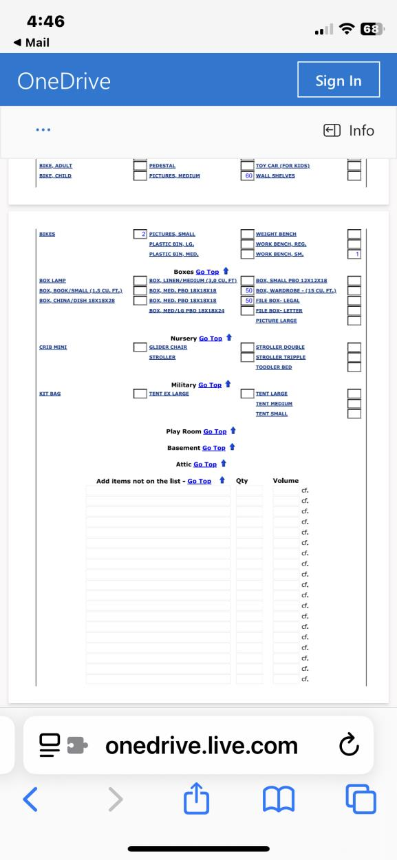 There are about 60 medium size lowes boxes, upright freezer, queen bed and frame, full size bed and frame, king size bed and frame, 6 foot table, 5 foot table, 8 chairs, 3 bar stools, 2 sets of golf clubs, 2 desks, industrial embroidery machine, small arcade video game, anarak chairs, 30 large plastic totes, hoilday decor, 2 craft carts, fire pit, and other misc.