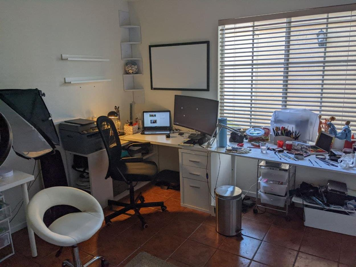 2x5 gun safe, 200 small boxes, 65 plastic tubs (3 gallon), 6 plastic tubs (40 gallon), bar table and 2 stools, 1 garage cabinet