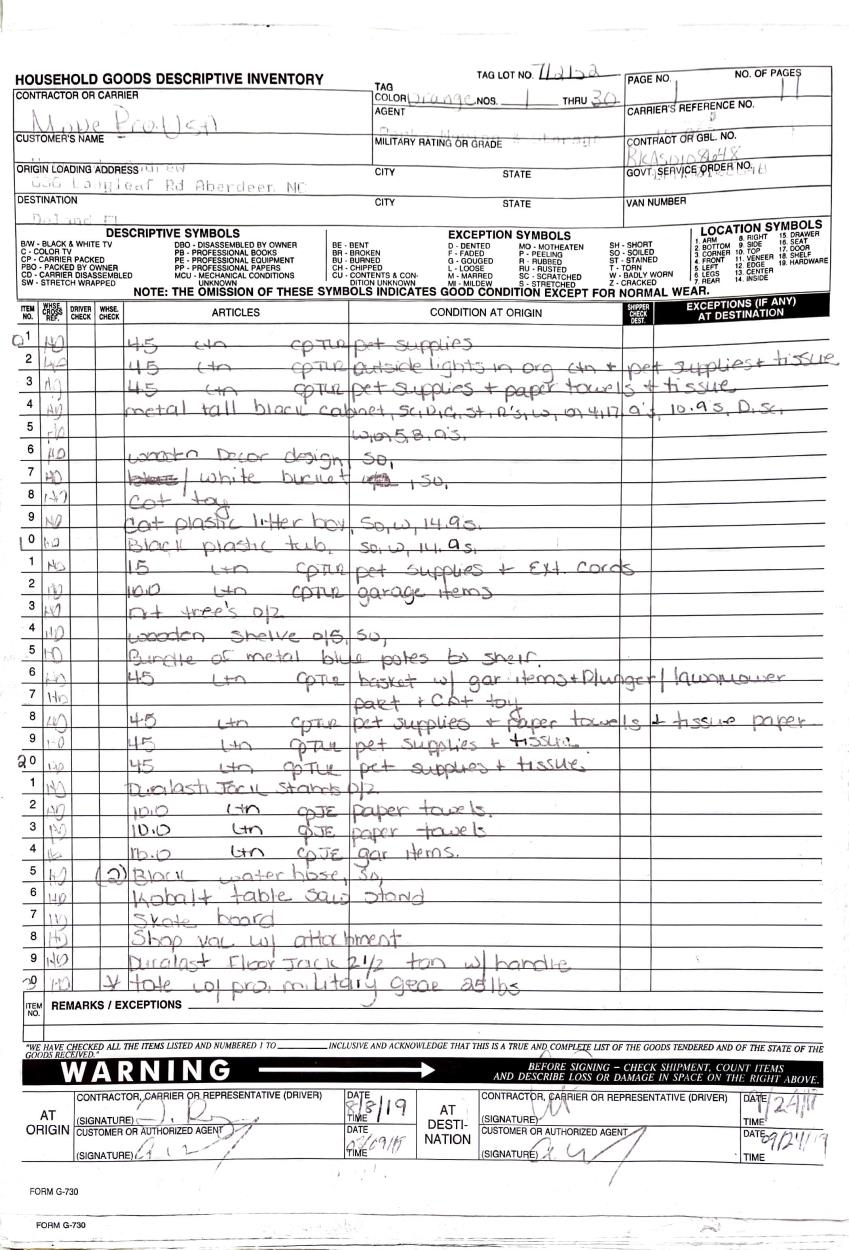 Expectation would be that the contents of storage are loaded into a waterproof container of some sort and transported (No tarp on flatbed). Carrier would be responsible for loading and unloading.