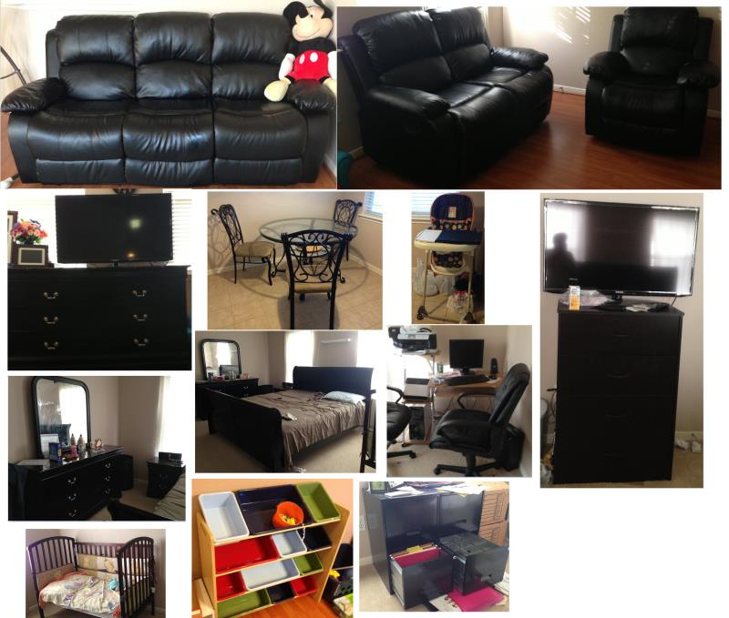 6.) Additionally to the list in the pictures there are few small items like plastic drawers, printer, baby rocking chair parts, 19" tv, 6 photo frames, small toddler chair, small 2 shelf units for books etc