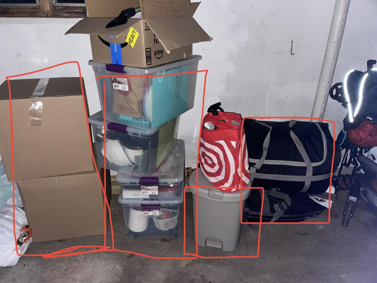 I have attached photos of some of the items. The only items not pictured are the trunk and the full sized mattress. The items boxed in red are the items that need to be transported. The bed frame is foldable and can be compacted.