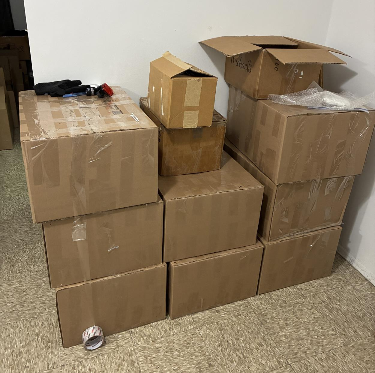 Everything will boxed and ready to load except for desk, office chair, craft room cube organizer shelves, 42" tv, small chest of drawers, lightweight nightstands, skinny bookcase, vanity table and chair, queen box spring and mattress, and utility cart.