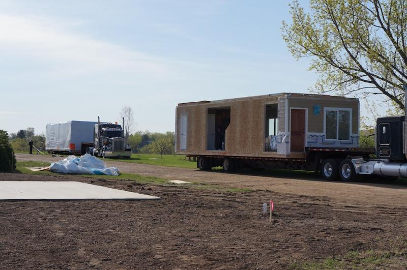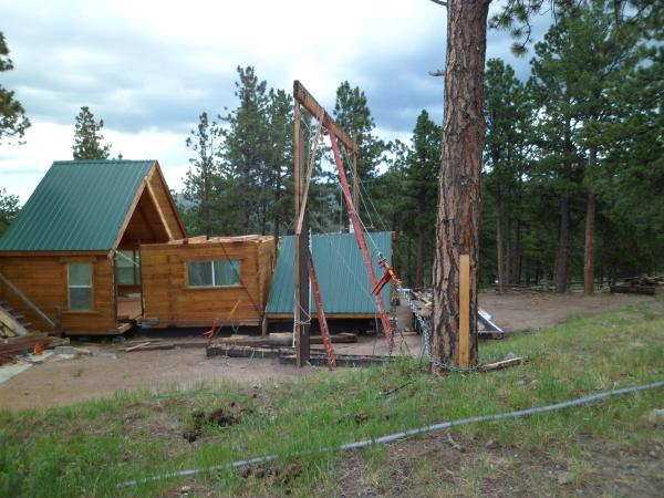 The first picture shows 3 pieces because the roof will come off the wall sections. The second picture shows the cabin before disassemble before delivery. This is a cabin broken down into 4 sections. 2 roof sections and 2 wall sections. The roofs will stack on top of each other for 26 x 14 x 11 tall and the 2 wall sections will slide into each other for 26 x 14 x 11 tall. The cabin is coming from a Mountainous area and going to another mountainous area. (Near the Rocky Mountain National Park. The last part of the trip will be the most challenging as it is a narrow winding mountain road. I think the best option is to take this load on two shorter trailers.