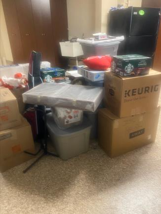 Moving office and personal items from Huntington, NY (Long Island) to Miami, FL. Approximately 23 pieces total, most small and medium plastic bins. Also one six foot projector screen, one large gray plastic bin, and a set of picture frames (visible in photos). Projector and picture frames would benefit from furniture blanket wrapping for protection, everything else is good to go.