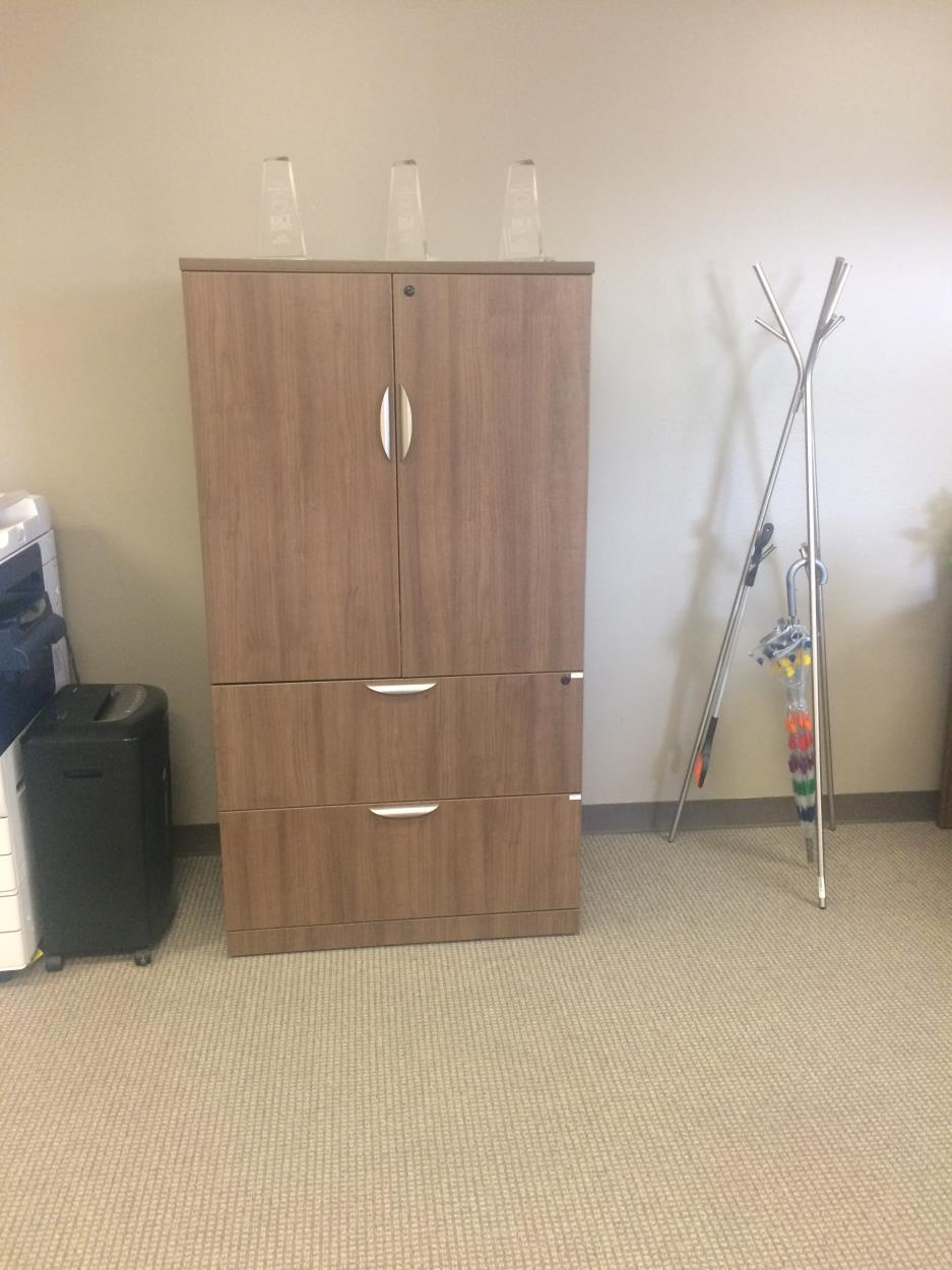 This is a small office move. Items to move are: TV (pictured), Cabinet w/files (pictured), small fridge (pictured), trash bin(pictured), 2 coat racks (one pictured), plus an estimated max of 25 moving boxes (probably less). May need help removing TV from wall.