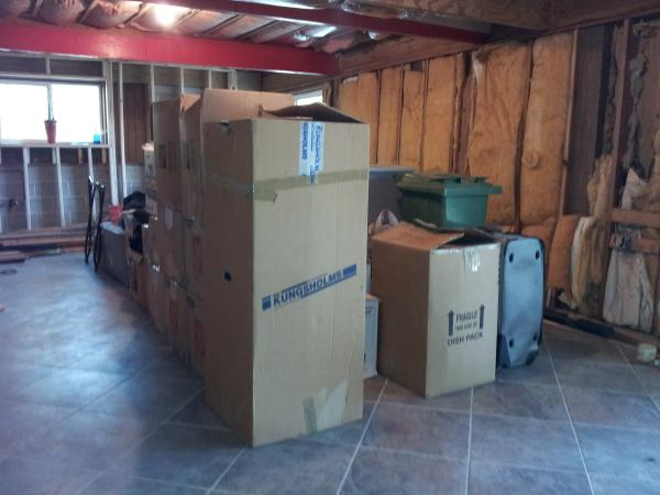 All contents are removed from house and packed in storage units, most in boxes except for shelving units, tables & chairs, furniture, freezer, bikes, tools & other equipment and other items that won't fit in a box.