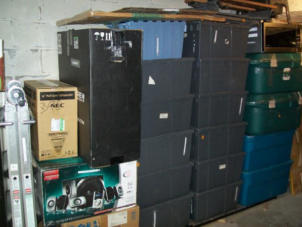 Contents in a 5X5' Public Storage locker located inside a building approx. 20' from any entry door. Largest/heaviest iten is a double mattress and box spring. Everything else is either small furniture broken down and packaged, medium size boxes and plastic bags containing clothes. The locker is about half full.