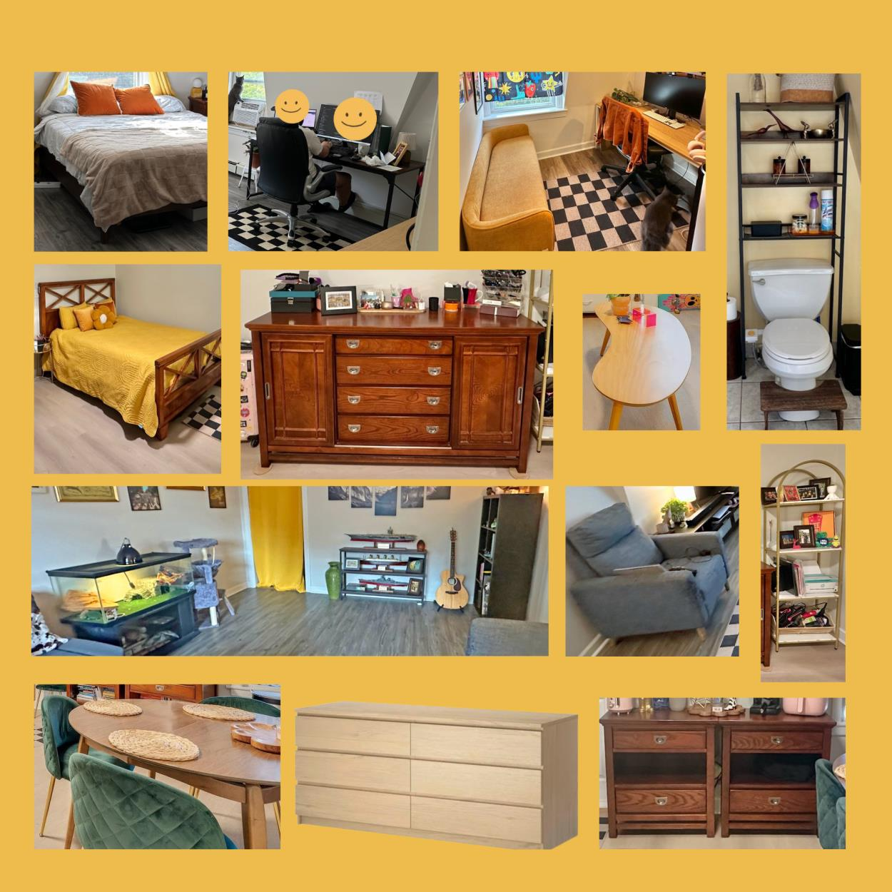 All we have 22 Boxes, 2 Beds with frame and mattresses(1 king and 1 queen), 1 Large Sofa, 1 TV 65", and 4some side tables, 1 dining table with 2 sitting tables and 2 chairs, 2 carpets and some small furniture's.