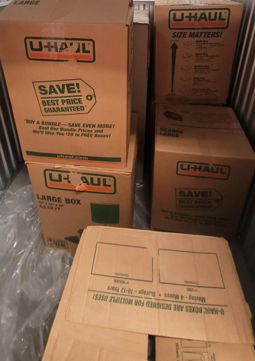 Storage unit, size 10x5, is on a second floor. Everything is packed and ready to move. Blanket wrap all large items not boxed.