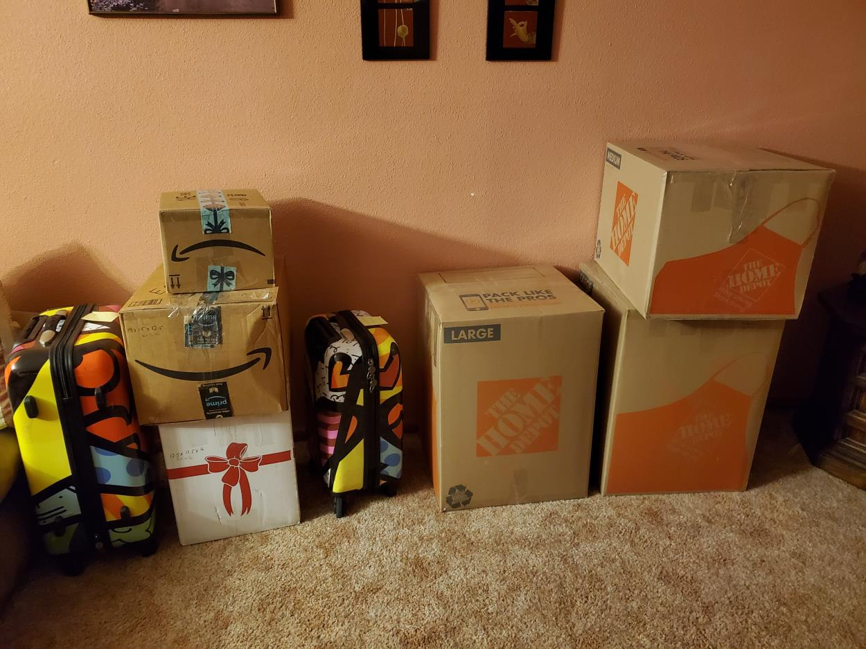 4-6 Boxes already packed, 2 bicycles not packed