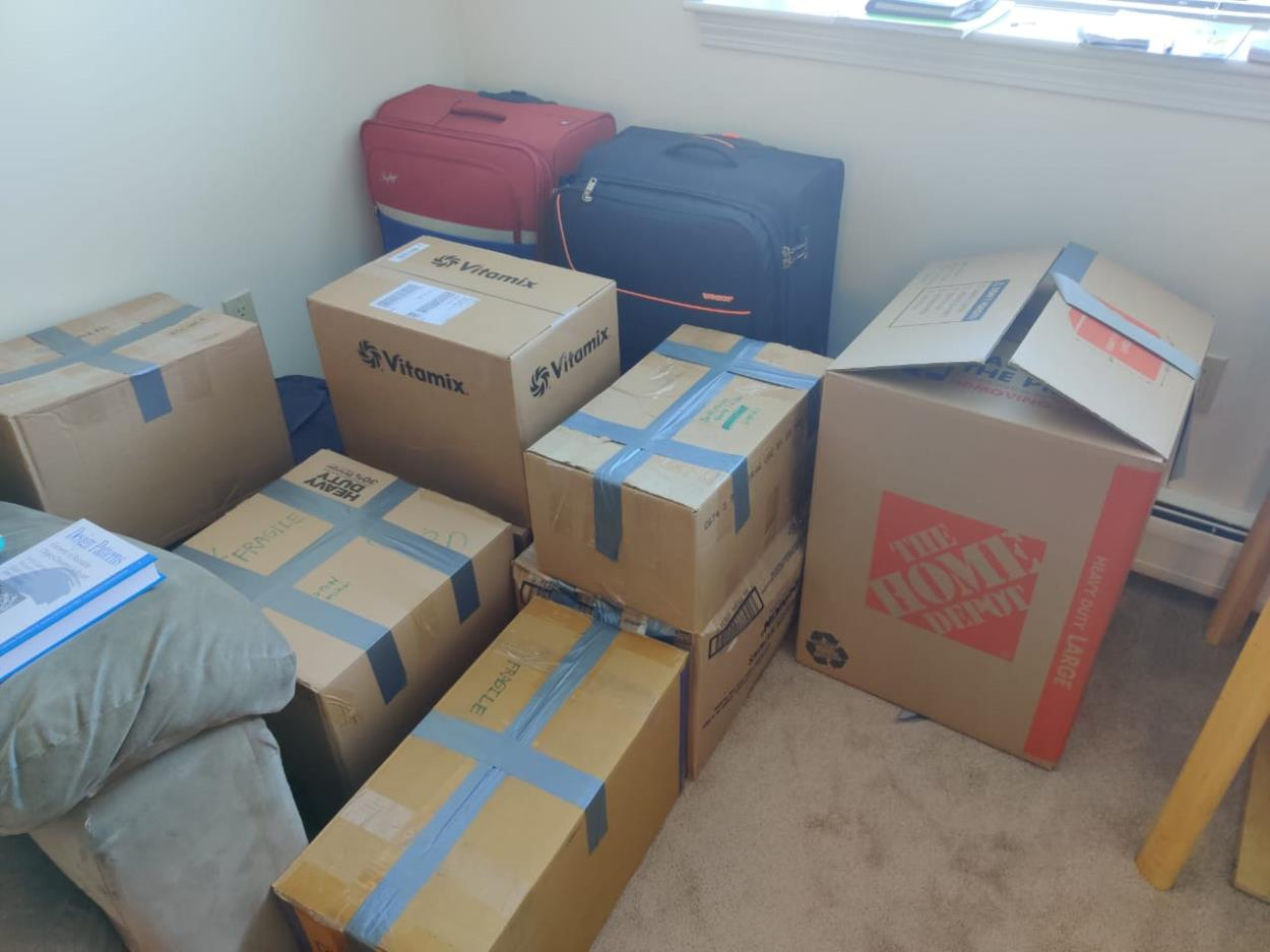 Boxes ready to go and some lamps. No other furniture.
