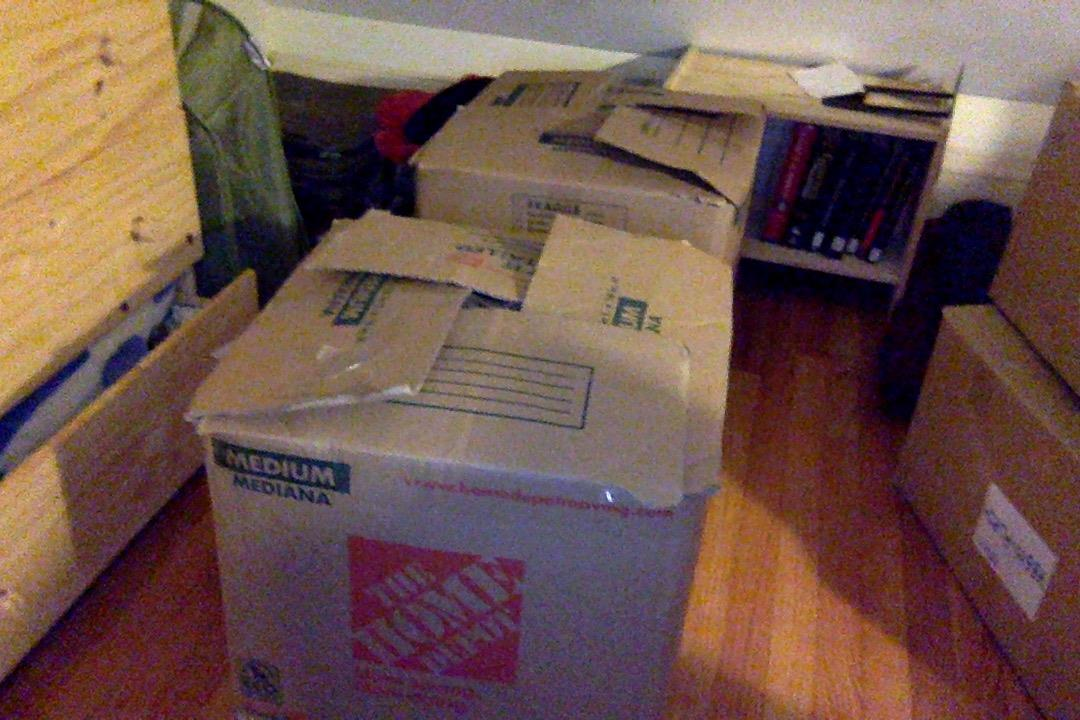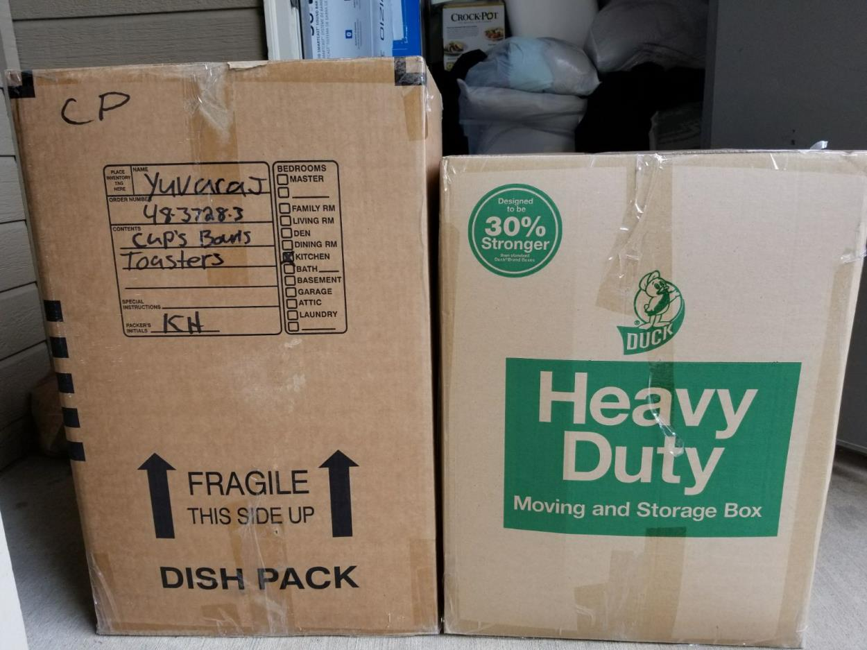 boxes are light: filled with bedding only or clothes.
