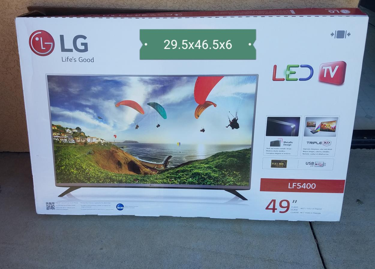 TV is an LCD 60" boxed, approx 36" x 57" x 6", 60 lbs