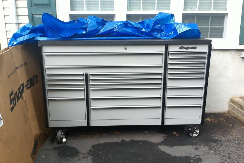 mechanic's tool chest on wheels, empty.