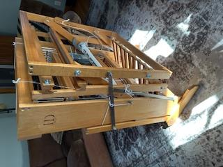 This is a small weaving loom that is folded up. It is wrapped in a moving blanket but is still fragile and needs to be handled like furniture. Because it is folded, it may fall over if not stabilized. The additional box is accessories.
