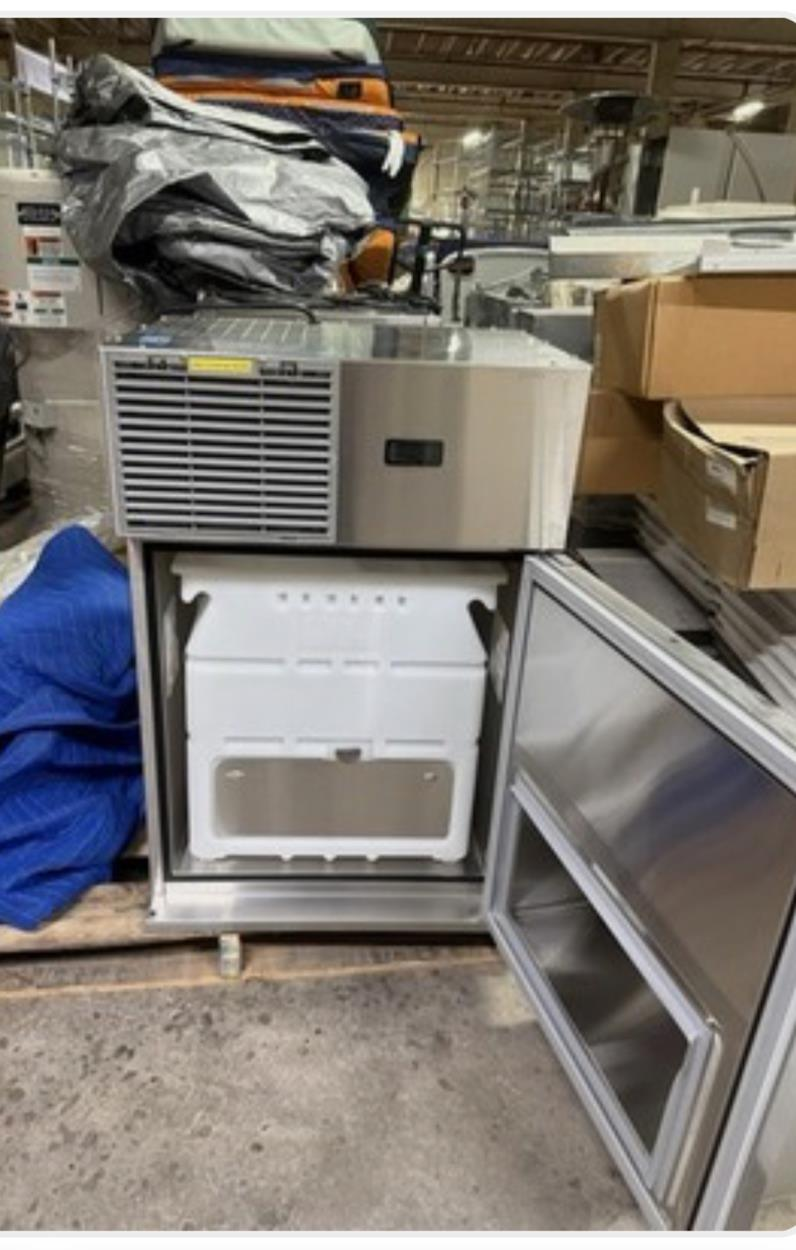 This refrigerator has to be shipped standing upright cannot be laid down on any sides, No exceptions. Item is open box and need ratchet strap corner protectors to not damage corners