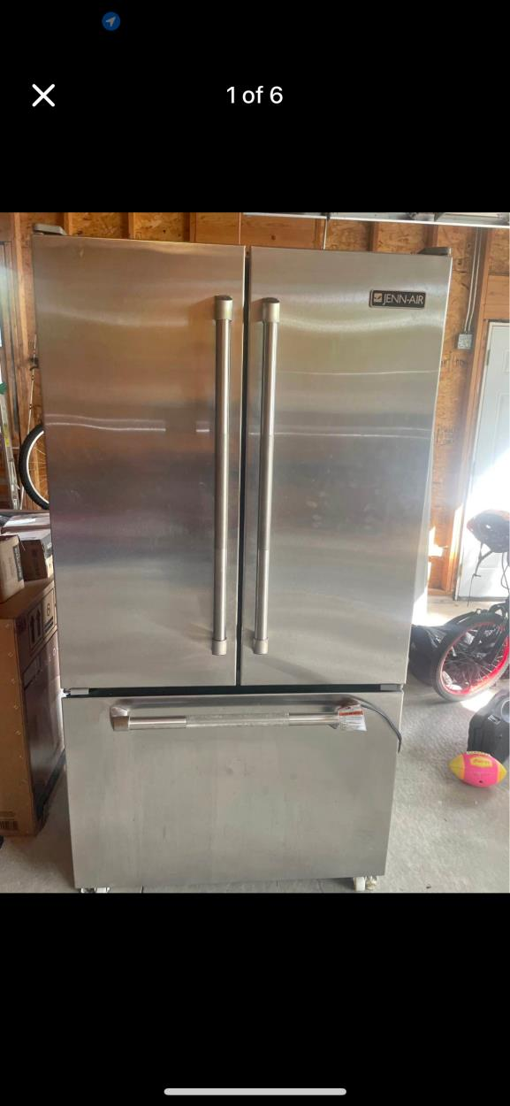 Refrigerator ready to load- no stairs, no doors in garage. Assistance confirmed for loading and unloading