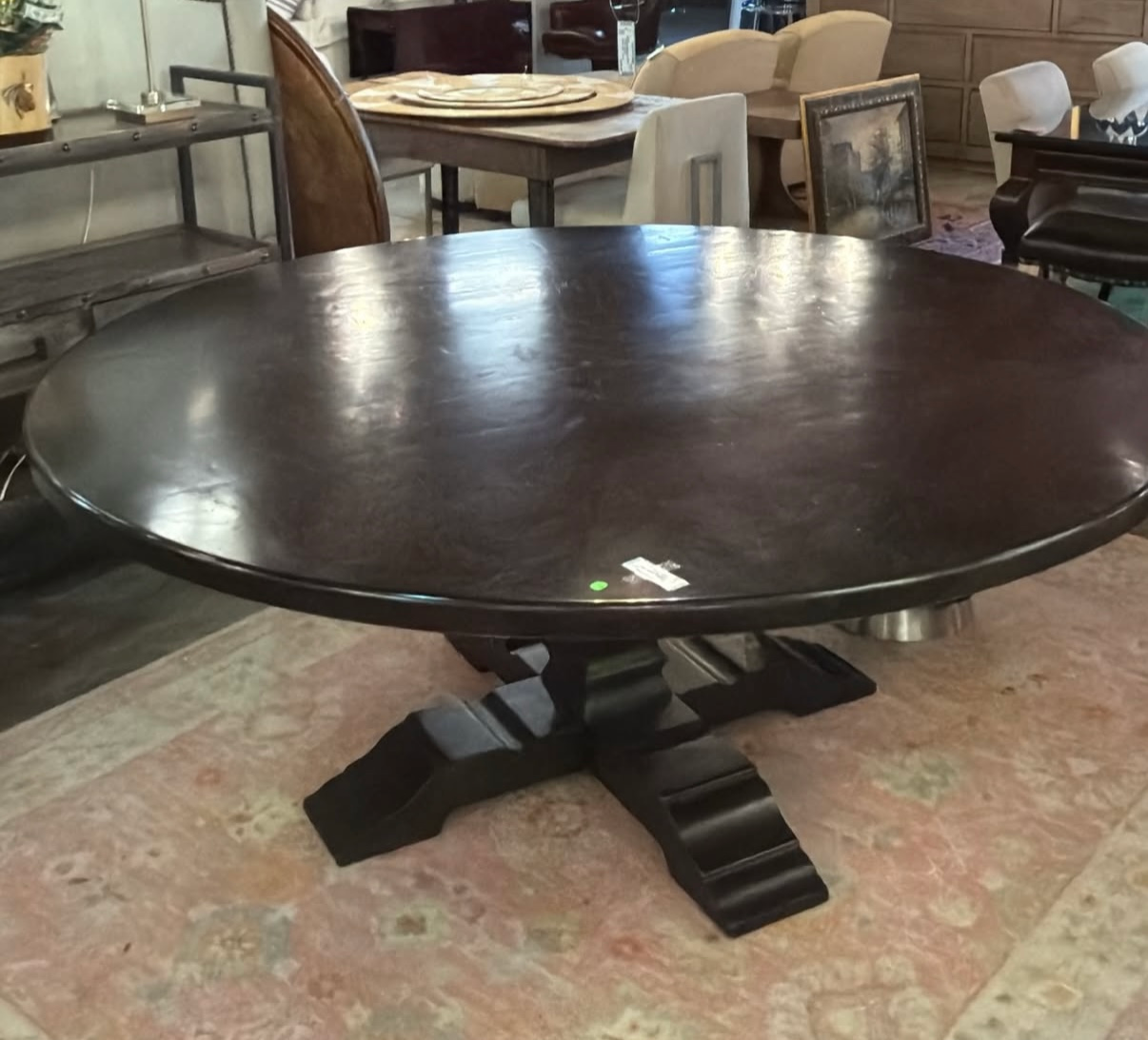 72" wood pedestal dining table. Table will be disassembled in 2 pieces (round top separate from base). Please blanket wrap and also ask for the bolts.