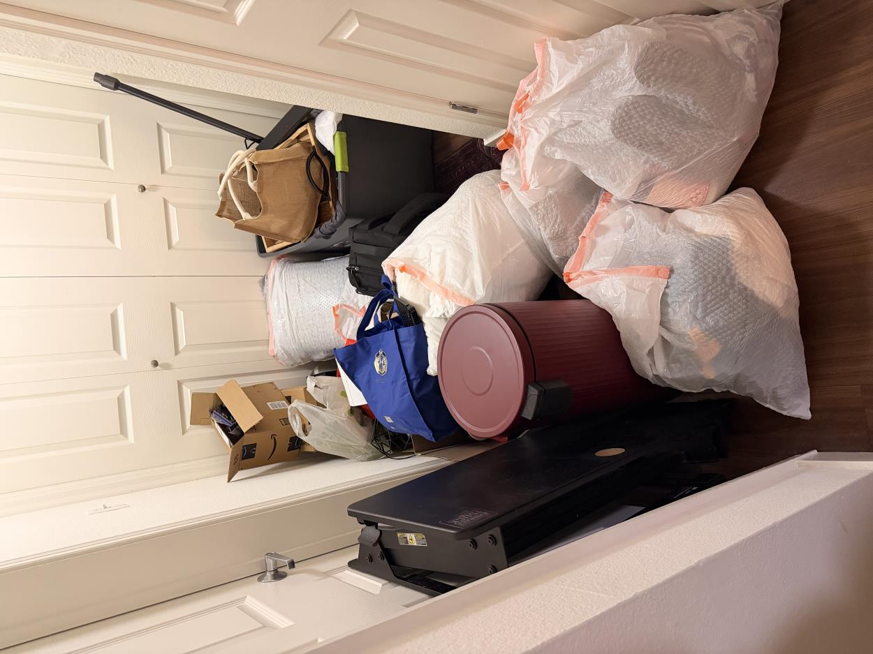 Have about 6 garbage bags full of various household items, mostly clothes and linens, one computer monitor. Pickup only on weekends, or after 5pm on weekdays,