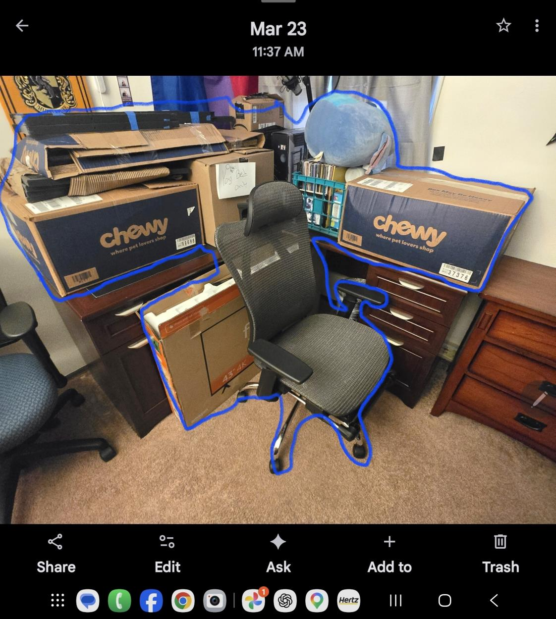 All the items circled in blue will be going. The amount of boxes I input is estimated if everything here needed to be boxed. The desk and night stand that the boxes are on top of (and under) are NOT being shipped.