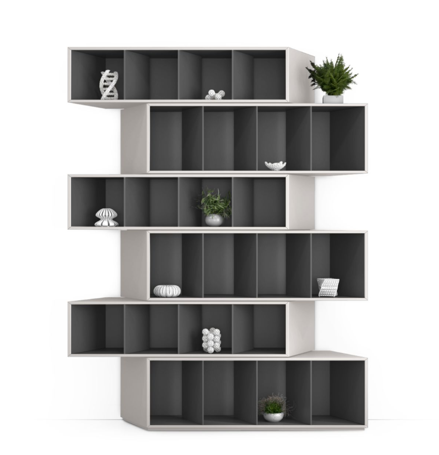 Bookshelf taken apart into thirds for easier movement
