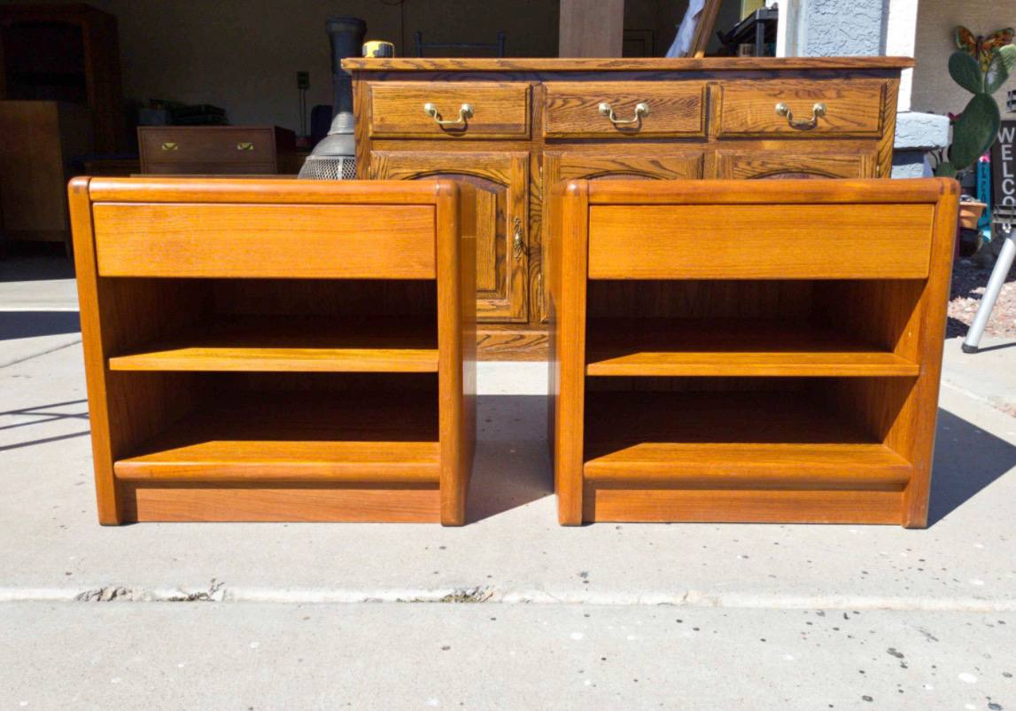 The shipment includes 2 nightstands and a lowboy dresser. Pickup is from a garage and delivery is to a business location, with no stairs involved at any point