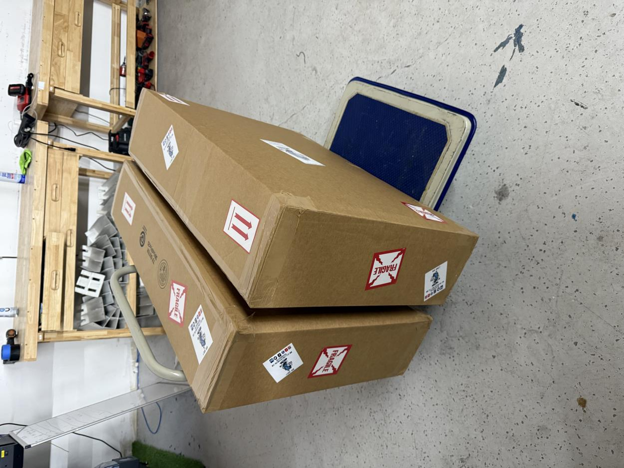 Three separately boxed amplifiers. Cannot be stacked and must be tied down.