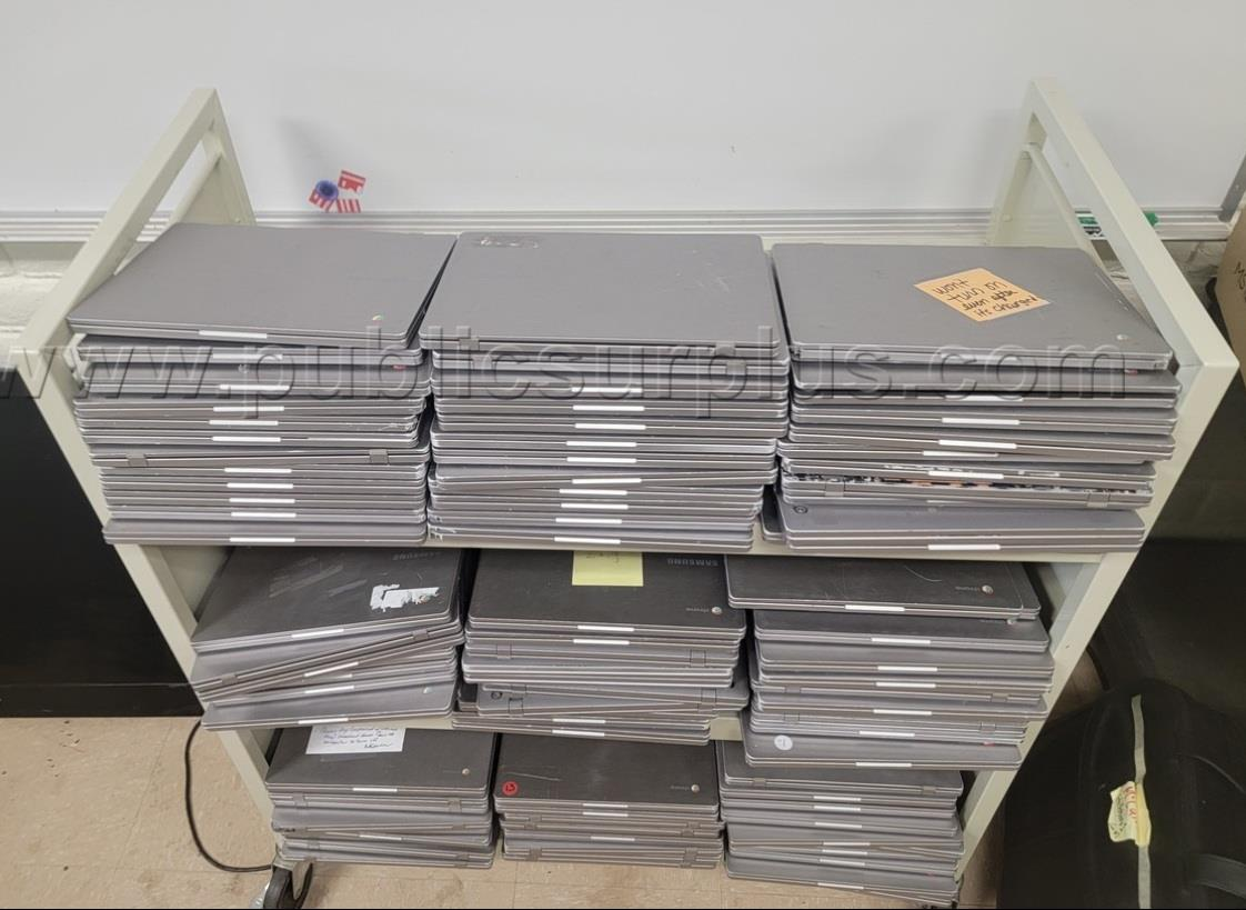 Items are fragile. Computer monitors and related equipment. 3 plastic totes, one carboard box and one golf bag.