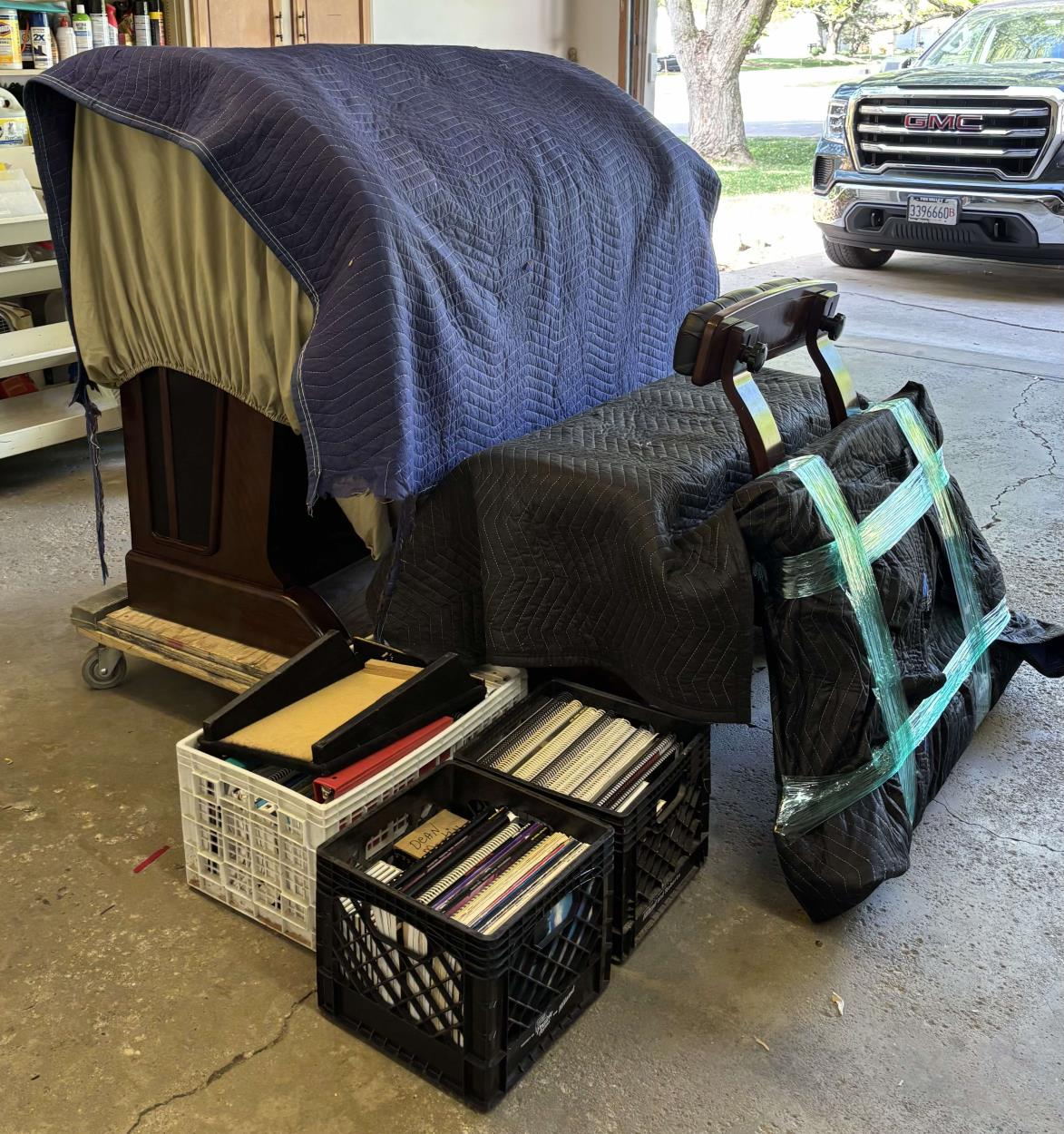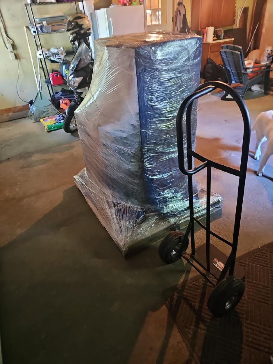The console is very fragile and must be transported with extra cushioning underneath along with blanket wrap all around. Plastic wrap is not required.