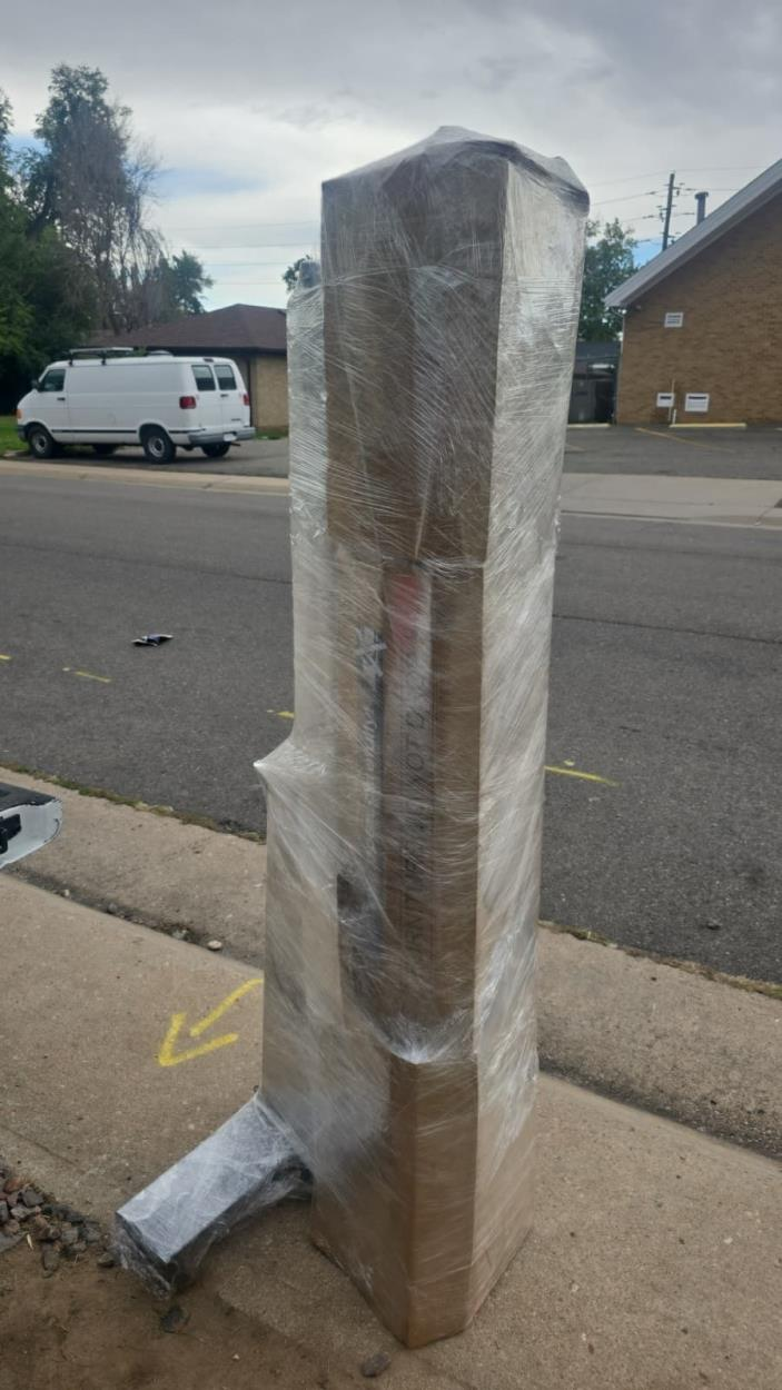 The radio console is very fragile and must be transported with extra cushioning underneath its base to prevent damage from road bumps. The radio must remain upright on its base and not laid on its back, side, or front. Blanket wrap must be placed around the radio several times. Plastic foil wrap is not required.
