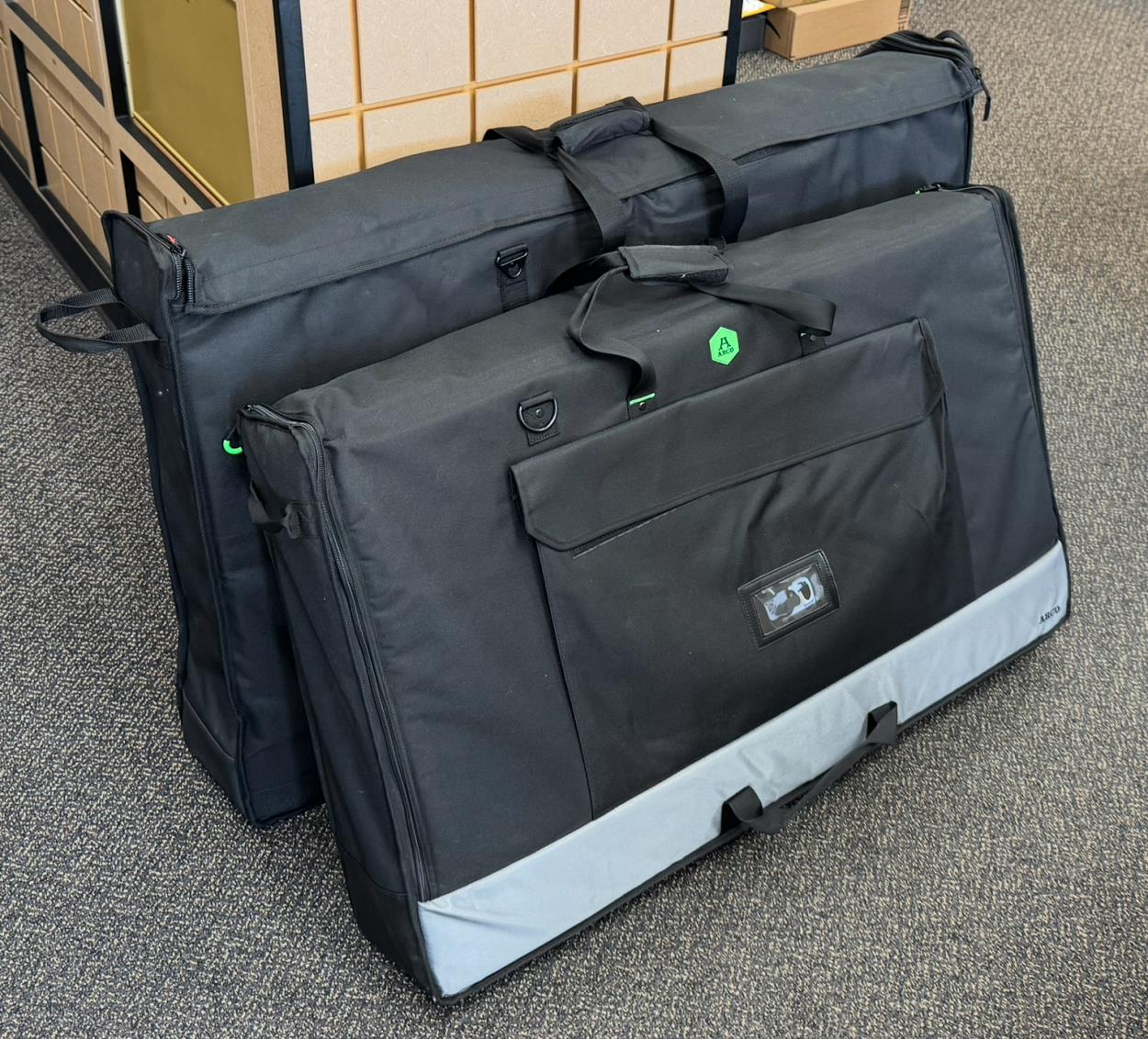 Bags have handles and can easily carried by one guy.