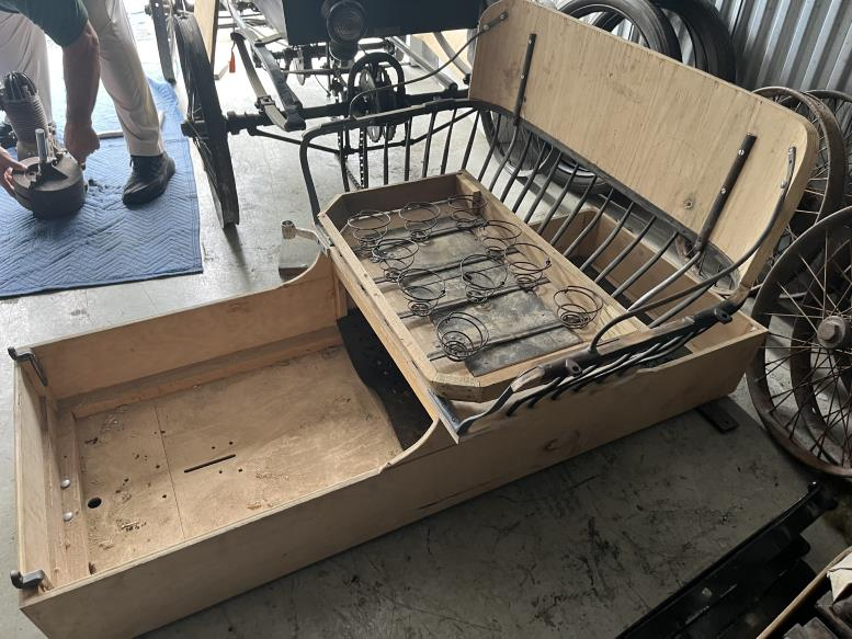1901 Crest automobile disassembled. I guestimate the volume of all of the parts is 5 feet high, 5 feet wide, and 5 feet deep. We can take the frame apart and stack the axles under the body. There are 4 wire wheels and 4 tires and a small 4 HP engine that go and several cardboard boxes of parts as well. MUST be a safe, locked inside haul. PLEASE do not offer to haul unless you are very protective of your haul contents!No stacking other freight on top of the parts.