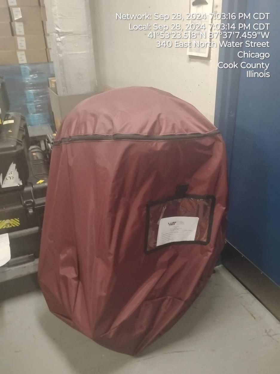 one pallets of wrapped boxes. Needs to be covered so rain does not damage