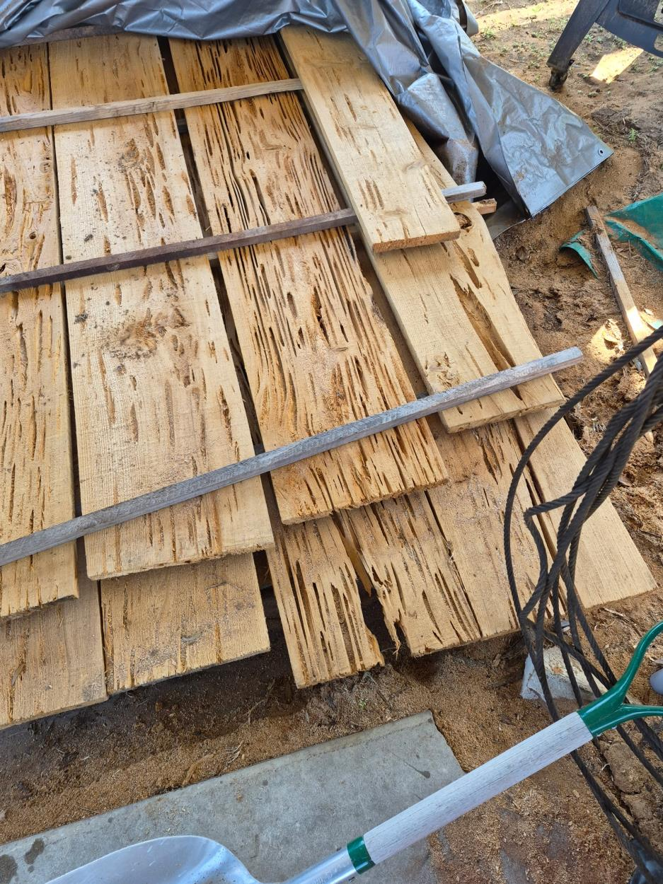 Is on a metal skid. Will need to be winched (pulled) onto trailer.