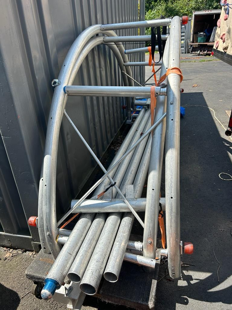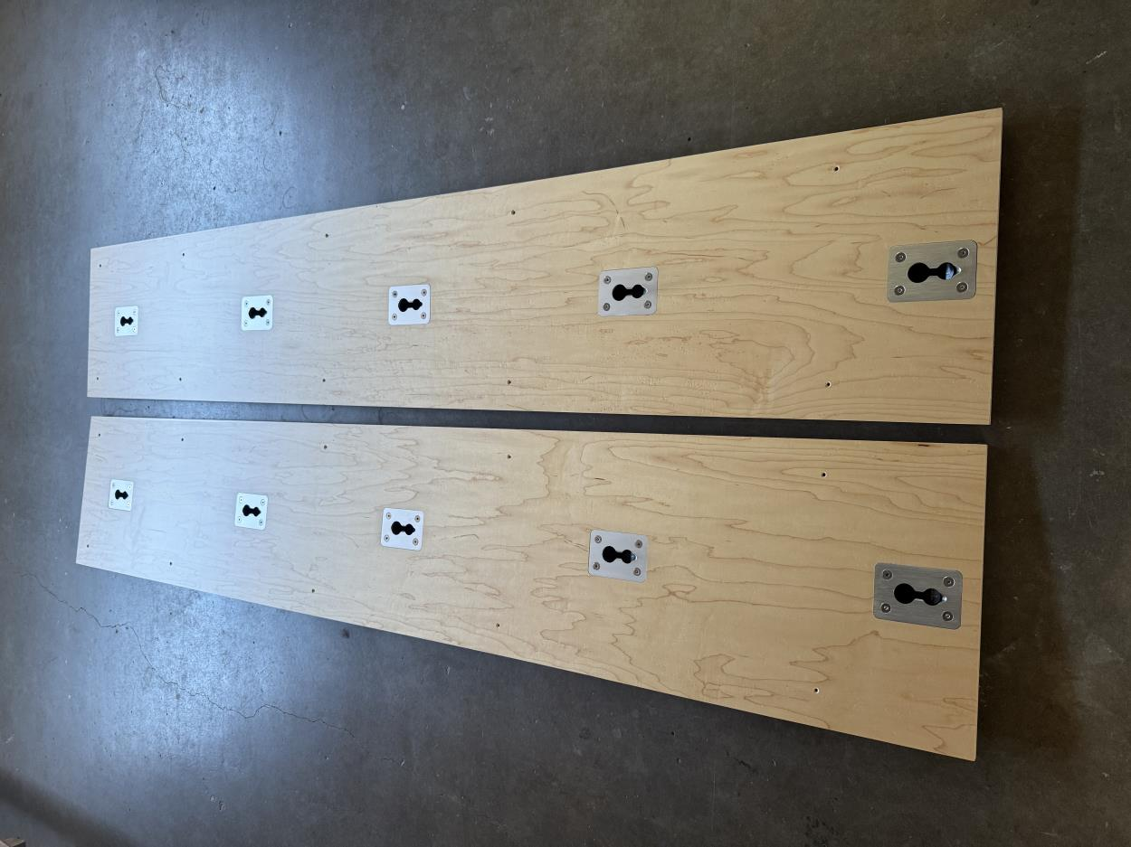 Finished sheet of plywood with hardware attached. Blanket wrap.