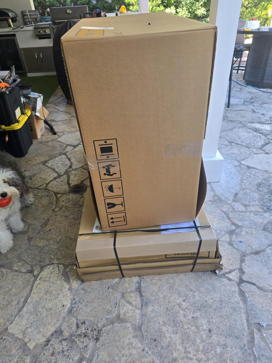 The metal tower detaches from the wood base. I need a pick up and wrap it up to protect it during travel. There is a external staircase at the pick up location. Thank you!
